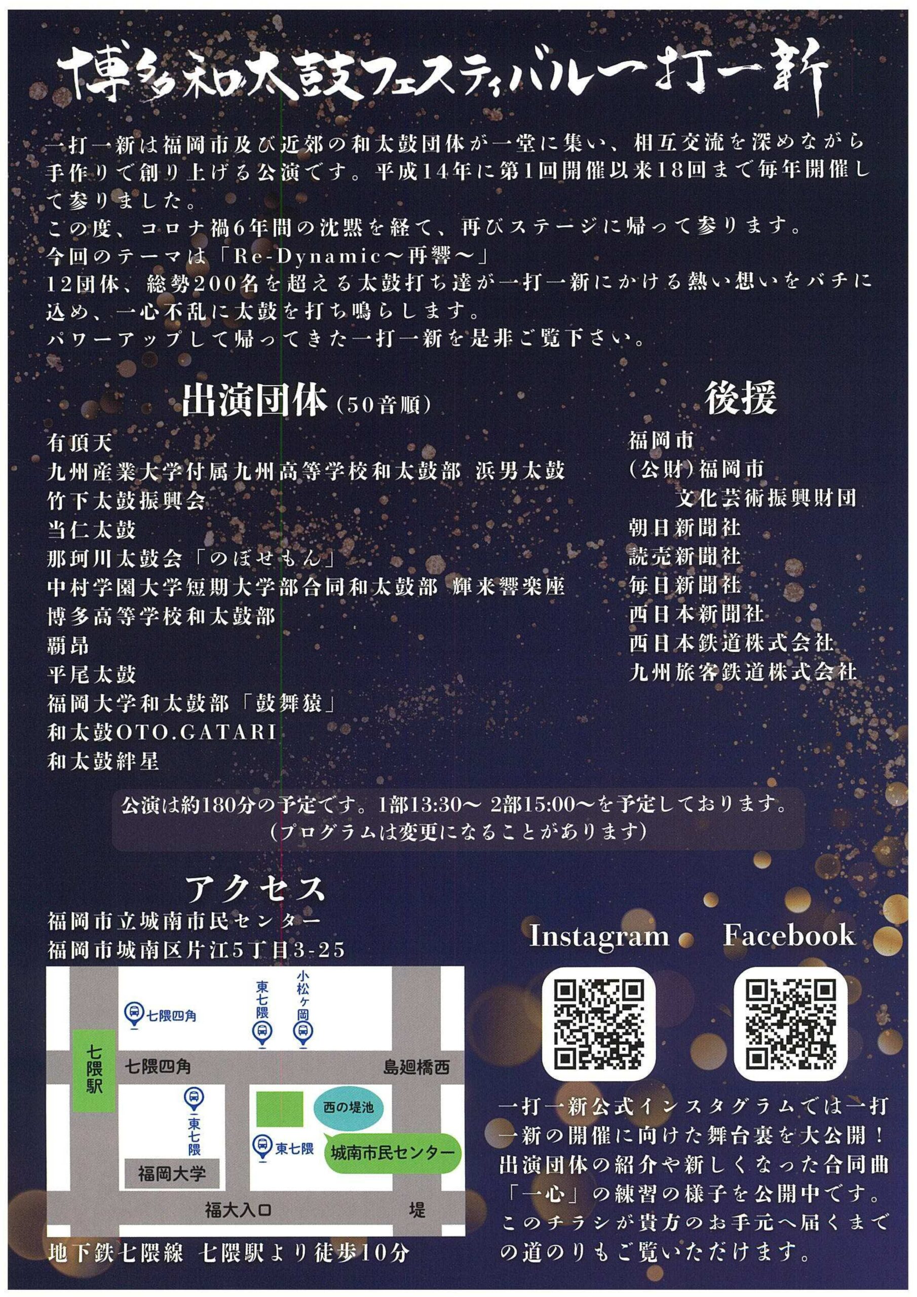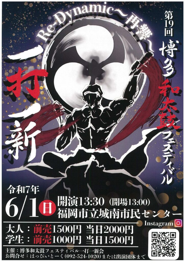 2025.05.29 2025年6月公演情報(2025年5月29日更新) 6月1日(日) 博多和太鼓フェスティバル 場所:福岡市立城南市民センター 時間:13時開場、13時30分開演 詳しくは下に掲載のチラシをチェックお願いします!皆様のお越しをお待ちしてます! Tweet Share 第41回 竹下まつり 前の記事 2025年7月公演情報(2025年7月4日更新) 次の記事